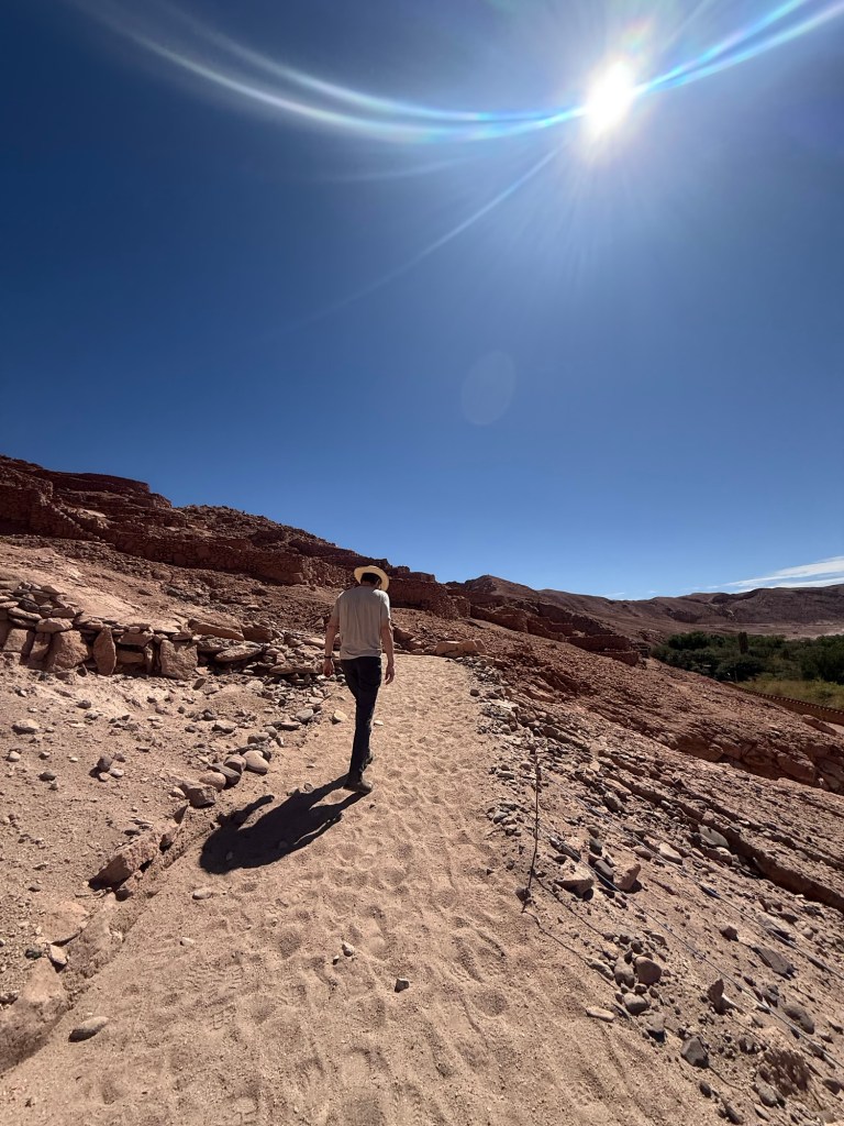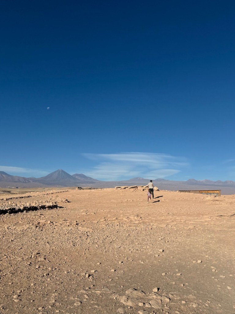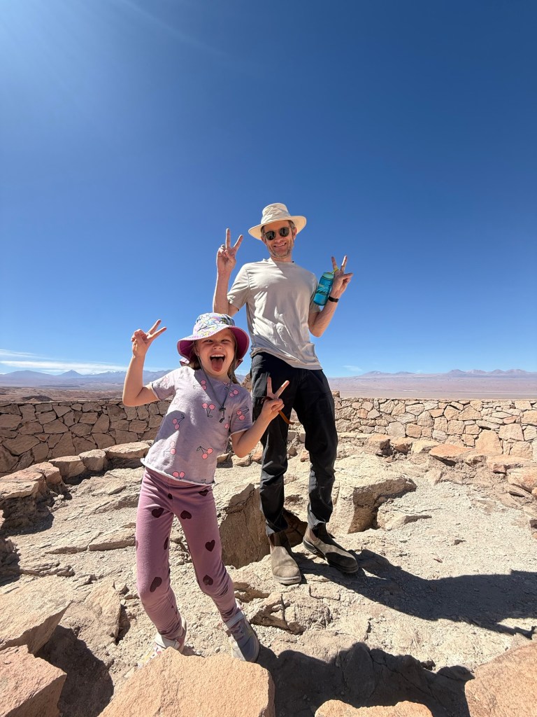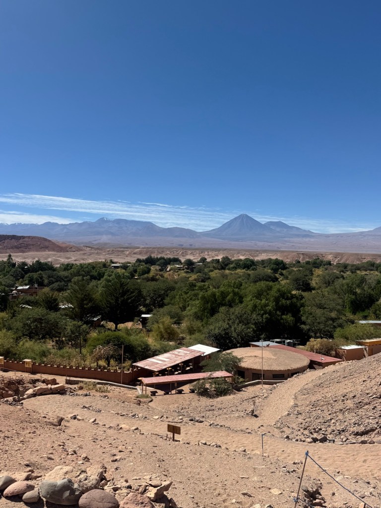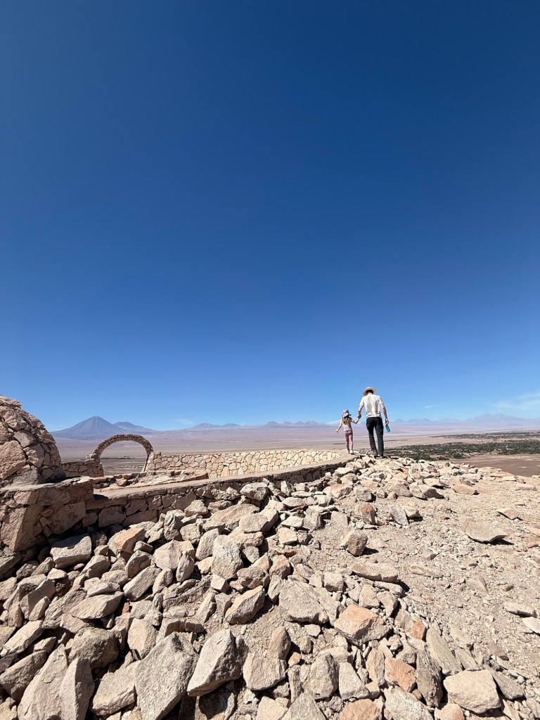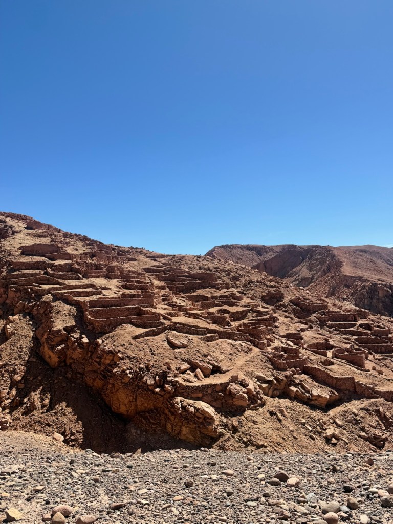 We picked up where our itinerary got canceled by the flat tire yesterday. After a big breakfast, we drove (slowly and carefully) over to the trailhead for Pakara de Quitor. More ruins. The man at the ticket desk explained that the ruins trail was closed but the viewpoint trail was open. We were there for the ruins but didn’t want to turn around again, and decided to climb to see the viewpoint. Luckily it took us right past the ruins so we got to see everything. This is a settlement where the Pre-Inca people of the area defended themselves against European settlers.