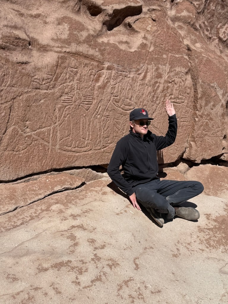 We drove just over an hour to the Petroglyphs. As in recent days, the drive was desolate and beautiful. It was just us and the vicuñas.