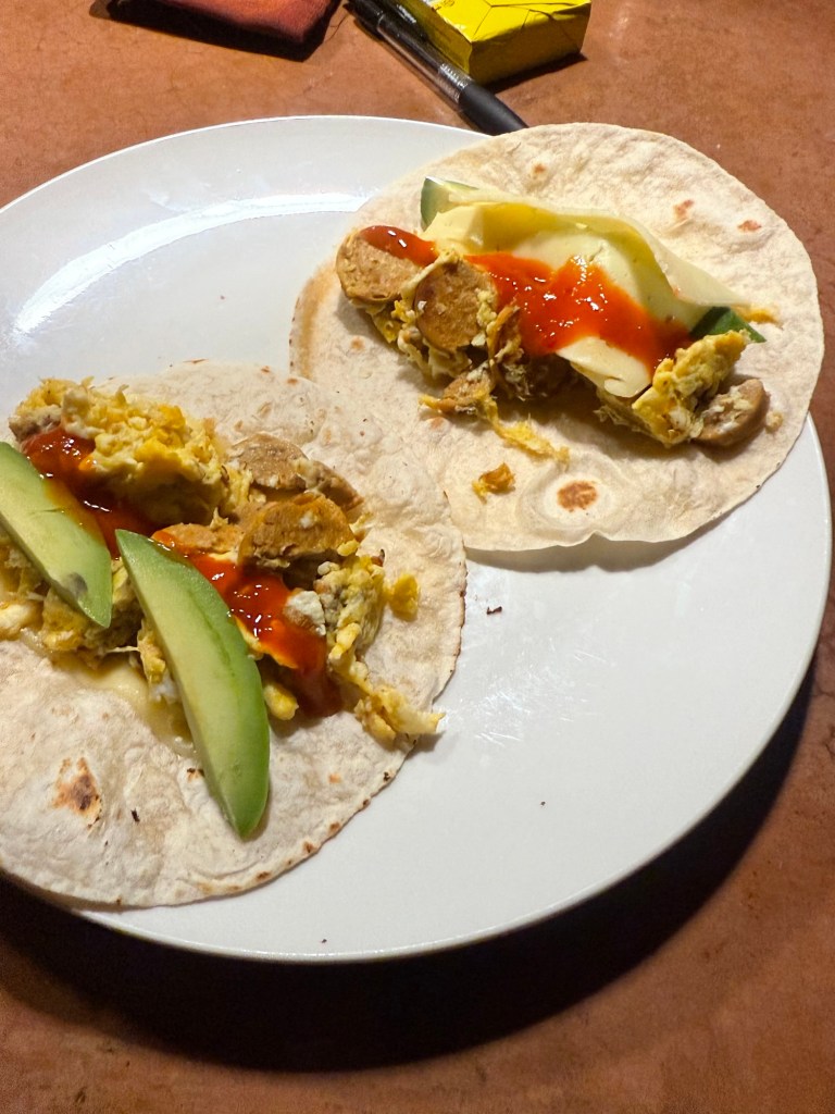 We stopped at the tiny grocery store and got some basics for dinner. I made breakfast tacos. They tasted like home.
